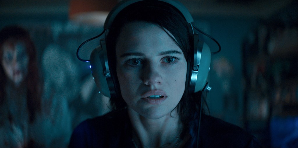 I can’t talk about this scene without using this truly horrifying photo through the peephole. Just terrifying and so much scarier to actually see the scenes that include it even after I saw it on so many thumbnails. We watch Ellie go bat-shit crazy in the hallway dismantling neighbors as the audience watches through the peephole, in a truly unique scene shooting style that was awesome to witness. Leading us to the cutest little girl actress in Nell Fisher playing Kassie. Kid actors can make or break movies for me, and she rocked it. Her torn emotions of wanting to help her mom and struggling to believe what she is witnessing is real was above and beyond what you are used to expecting from kids in horror movies. The Deadites being passed on to Bridget (Gabrielle Echols) brought me back to what makes these movies so great, where the Deadites just can spread to wreak havoc. She teaches us that glass shards aren’t so easy to swallow, and cheese graters work on flush just as well as it’s intended namesake. After trying to kill her brother Danny (who is the reason for all of this because he couldn’t leave the damn book alone), her death truly was shocking at the hands of Kassie and “Staffanie.”