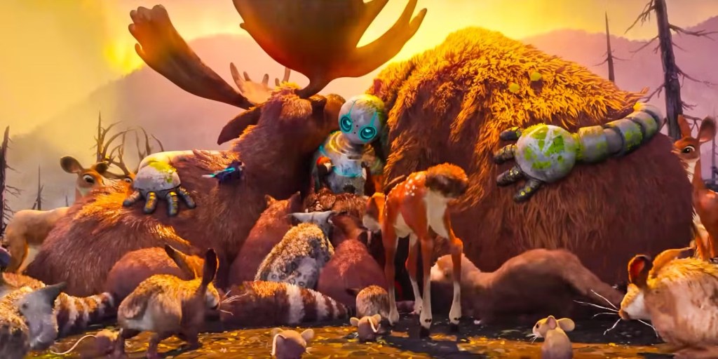 I couldn’t believe how incredible this film touched on a the meaning of family. You have lessons about being a mother, raising your children, how to handle friction within your family relationship, and telling one another how you truly feel because you may not get another chance to. This is the part of the film that broke me emotionally, in a good way. The way you have Brightbill knowing that Roz isnt his biological mother but not caring because she has been his mother since birth and has raised and cared for him like no other. Rewriting her programming to learn to become a mother, which I feel like so many mothers should be able to relate to, learning, failing, and succeeding on the way to raising their kids.